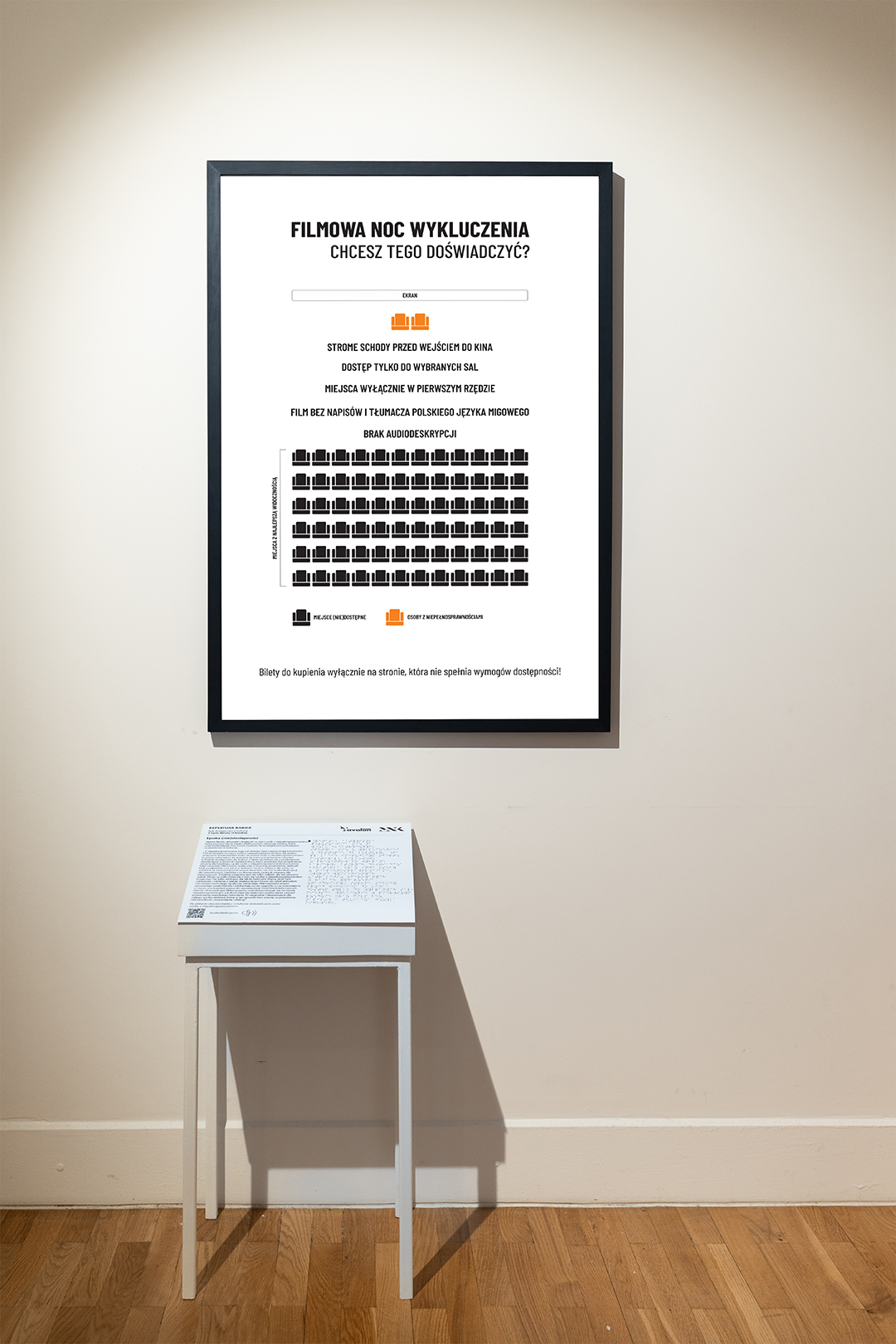 Na plakacie ukazano bariery w kulturze doświadczane przez osoby z niepełnosprawnościami. Historia Renaty, aktywistki i działaczki na rzecz osób z niepełnosprawnościami, która porusza się na wózku elektrycznym, obrazuje bariery, które uniemożliwiają jej oraz innym osobom ze szczególnymi potrzebami uczestnictwo w kulturze: