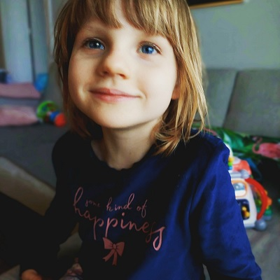 Cześć, jestem Łucja. Przyszłam na świat w Walentynki 2017r. z bardzo rzadką chorobą genetyczną – Zespołem Angelmana.