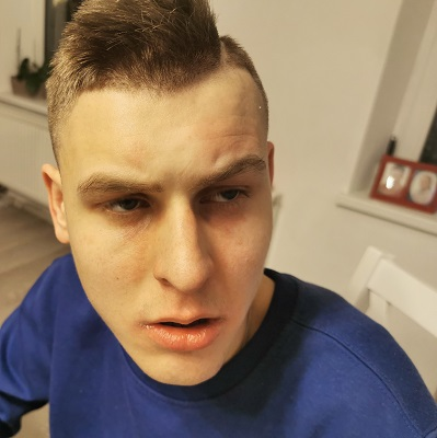 Dzień dobry nazywam się Łukasz Łągiewka mam 25 lat. Urodziłem się z zespołem jelita krótkiego, mam zespół zesztywniający stawów kręgosłupa, alergie, stłuszczenie wątroby, a w tym roku doszła mi padaczka.
