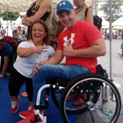 Adrian Paratowski, lat 30. W sierpniu 2015 r. uległ wypadkowi samochodowemu i doznał złamania kręgosłupa na poziomie Th12. W wyniku urazu rdzenia kręgowego Adrian jest sparaliżowany od pasa w dół. Adrian miał też liczne złamania twarzoczaszki, uszkodzone prawe oko. Kości twarzy zostały zespolone i został mu wszczepiony implant soczewki. Po wypadku żaden z lekarzy nie dawał mu szans na przeżycie.
