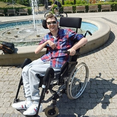 Nazywam się Adrian Sęp. Urodziłem się w 1992 roku. Choruję na Mózgowe Porażenie Dziecięce. Mam niedowład spastyczny 4-kończynowy, porażenie, skrzywienie kręgosłupa piersiowo-lędźwiowego lewostronne (C80/M41).
