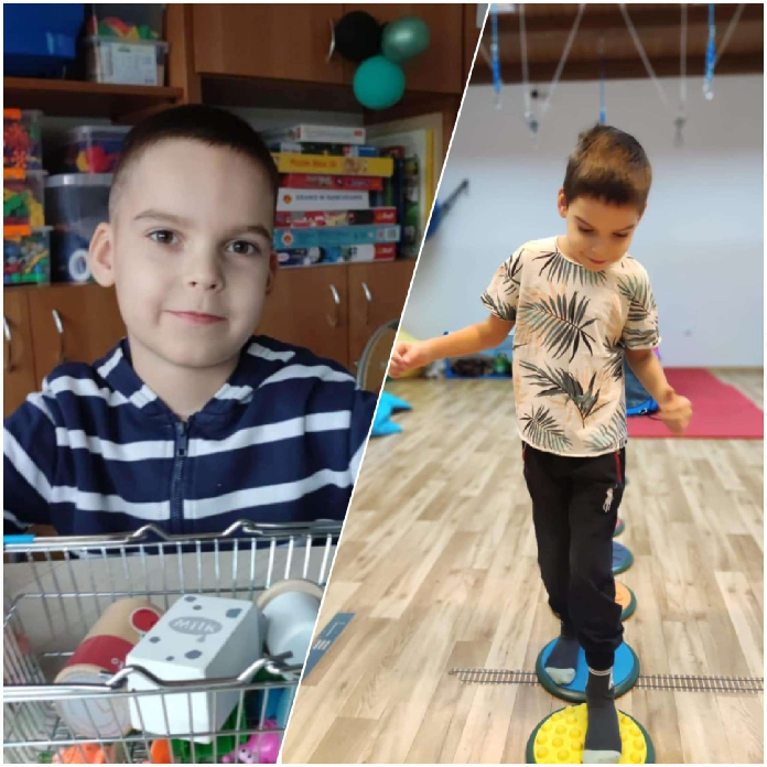 Jestem pogodnym chłopcem, niestety występuje u mnie obniżone napięcie mięśniowe, opóźniony rozwój intelektualny w stopniu umiarkowanym, opóźniony rozwój mowy i rozwój psycho-ruchowy, agresja i autoagresja, zaburzenia SIoraz Autyzm.Codziennie biorę udział w terapiach wspomagających Mój rozwój, które są bardzo kosztowne. Obecnie jestem pod opieką neurologa, psychiatry, logopedy i kilku innych terapeutów. Potrzebuję Waszego wsparcia.