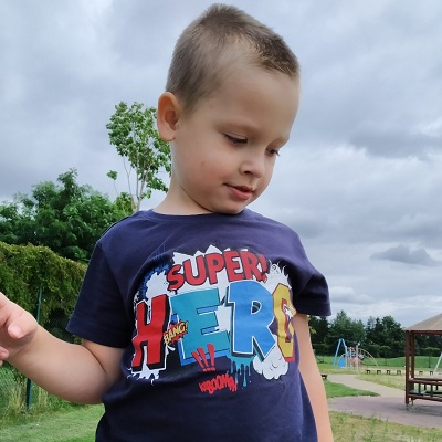 Jestem Aleksander, mam prawie 8 lat. Choruję na padaczkę lekooporną, schizencefalię i porażenie dziecięce.