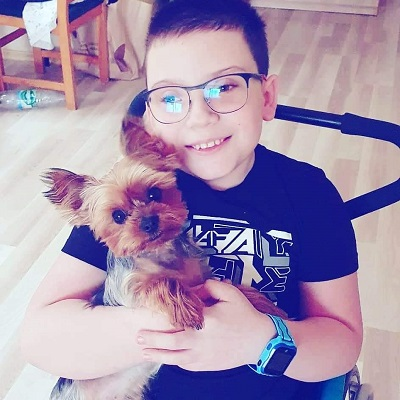 Alex od urodzenia choruje na przepuklinę oponowo-rdzeniową, wodogłowie, pęcherz neurogenny oraz stopy końsko-szpotawe. Od niedawna zaczął nosić okulary.