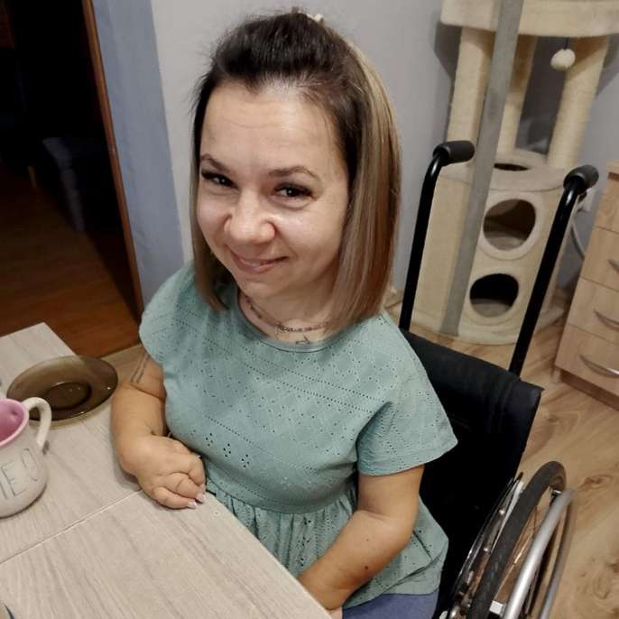 Nazywam się Aneta Musiałek, jak miałam 4 lata zachorowałam na MIZS - Młodzieńcze Idiopatyczne Zapalenie Stawów. Mając 11 lat zaczęłam się poruszać na wózku. Niestety, badania z 2021 roku wykazały szereg nieprawidłowości w moim kręgosłupie. Stwierdzono m.in. zaburzenia i uszkodzenie korzeni rdzeniowych i splotów nerwowych oraz spondylozę.