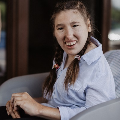 Cześć! Jestem Ania i mam 26 lat! Od urodzenia jestem osobą niepełnosprawną. Mam rozpoznaną torbiel w przezroczystej komorze mózgu, małogłowie oraz upośledzenie umysłowe w stopniu znacznym z głęboką dysfunkcją mowy. W związku z tym nie potrafię mówić, pisać oraz samodzielnie się poruszać.