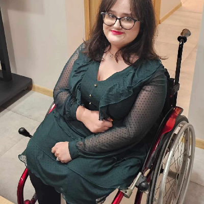 Cześć! Nazywam się Dominika Mailjan-Chadaj i mam 25 lat. Urodziłam się z przepukliną oponowo-rdzeniową, w skutek czego poruszam się na wózku inwalidzkim.