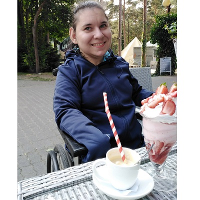 Nazywam się Dorota Owczarek, mam 35 lat. Od urodzenia choruję na Dziecięce Porażenie Mózgowe czterokończynowe.