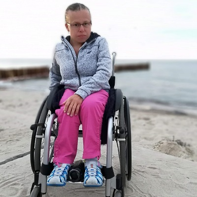 W dzieciństwie przeszłam szereg operacji nóg, bioder i kręgosłupa. Mam częściowy niedowład prawej nogi i ręki oraz znaczne zniekształcenie obu tych kończyn. Od 26 lat poruszam się przy pomocy kul pachowych i coraz częściej wózka inwalidzkiego. Niestety choroba w dalszym ciągu postępuje. Od niedawna borykam się również z neuropatią obwodową kończyn górnych. Każdego dnia walczę o siłę, samodzielność i przede wszystkim o to, by zahamować postęp choroby.