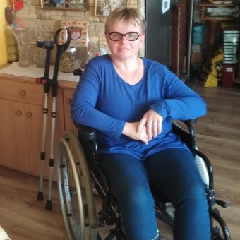 Lekarze stwierdzili niedowład czterokończynowy spastyczny. Niestety niepełnosprawność, z którą się borykam z każdym rokiem pogłębia się. M235 - niestabilność wielokierunkowa stawu kolanowego prawego (przerost kolana), prawa stopa opadająca - końsko szpotawa, słaba siła mięśniowa - to tylko niektóre z problemów, z jakimi się zmagam. Poruszam się z pomocą drugiej osoby na wózku inwalidzkim i chodziku.