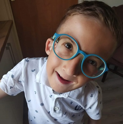 Jestem Filip i choruję na liczne wady kostne stóp i kręgosłupa, wadę serca, głęboki niedosłuch, postępującą krótkowzroczność, rozszczep podniebienia, wadę nerek.