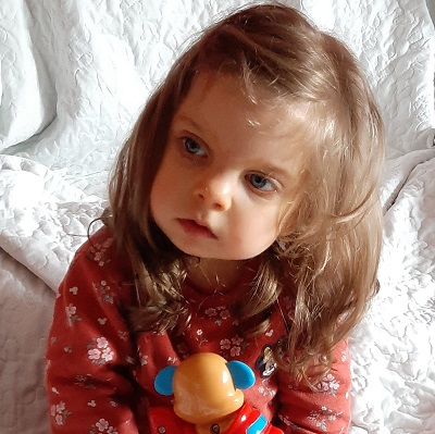 Mam na imię Gaja, mam trzech starszych braci. Ur. się w marcu 2019r. zupełnie zdrowa, w 28 dniu życia trafiłam do szpitala z powodu braku łaknienia i wahania masy ciała. Po kilkumiesięcznych badaniach genetycznych i metabolicznych otrzymaliśmy diagnozę: BOHRING OPITZ-SYNDROME (dysmorfia, małogłowie, obniżone napięcie mięśniowe, opóźniony rozwój psychoruchowy, dysgenezja ciała modzelowatego).