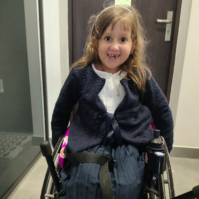 Jestem Igusia, chodzę do pierwszej klasy i od 7 lat choruję na SMA 1.