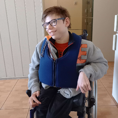 Mam na imię Jakub. Jestem pogodnym chłopakiem z MPD, z niepełnosprawnością w stopniu znacznym. Poruszam się na wózku z pomocą innych. Od urodzenia zmagam się z wieloma trudnościami i cierpieniem.