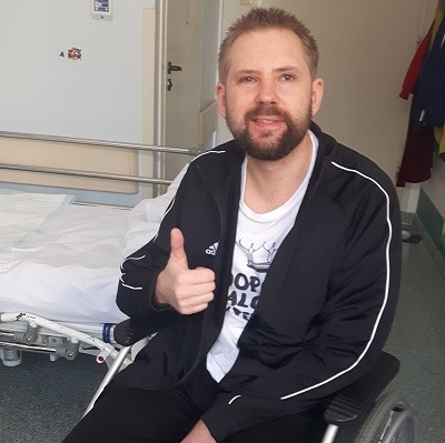 Jestem Kuba, mam 35 lat, około dwóch miesięcy temu przeszedłem poważny udar pnia mózgu, który spowodował u mnie całkowity niedowład lewej i częściowy niedowład prawej strony ciała, straciłem czucie, miałem zaburzenie mowy, widzenia i przełykania. Pomimo trudności, nie poddałem się, dzięki rodzinie i przyjaciołom od których otrzymałem wsparcie i pomoc.