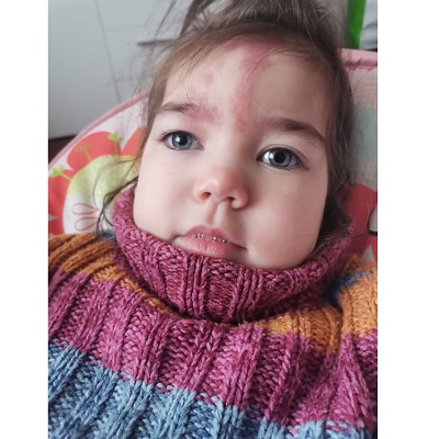 Julia ma 3 lata. W drugim miesiącu życia rozpoznano u niej Zespół Sturge-Weber'a. Jest to rzadki zespół wad wrodzonych. Objawia się naczyniakowatością twarzowo-mózgową. Znamię u Julii obejmuję czoło oraz prawą powiekę, co może spowodować jaskrę. Julia ma również padaczkę lekooporną, przez którą dwa razy trafiła na intensywną terapię.