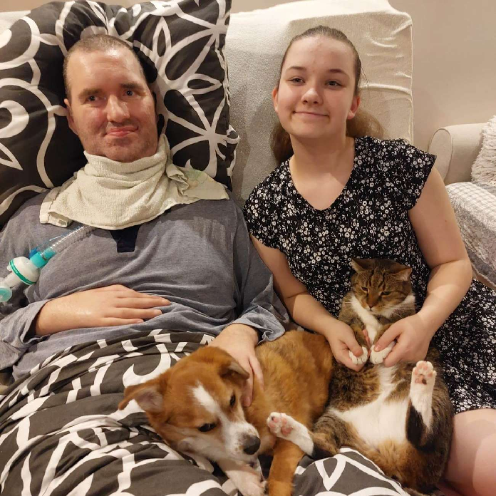 Na chwilę obecną mam porażenie 4-kończynowe, jestem odżywiany sondą, a przy życiu utrzymuje mnie respirator 24/h. Walczę z tą chorobą już ponad 15 lat i nie poddaje się - mam dla kogo żyć. Całkowitą opiekę nade mną sprawuje moja żona i nasza córka, która nie zna Taty zdrowego. To dla nich chcę żyć i nie poddaję się. Z Waszą pomocą „moje dziewczyny” będą miały choć „trochę lżej” i będą mogły mi dalej pomagać w codziennym funkcjonowaniu i opłacać wciąż pojawiające się nowe potrzeby (leki, rehabilitacja etc.).