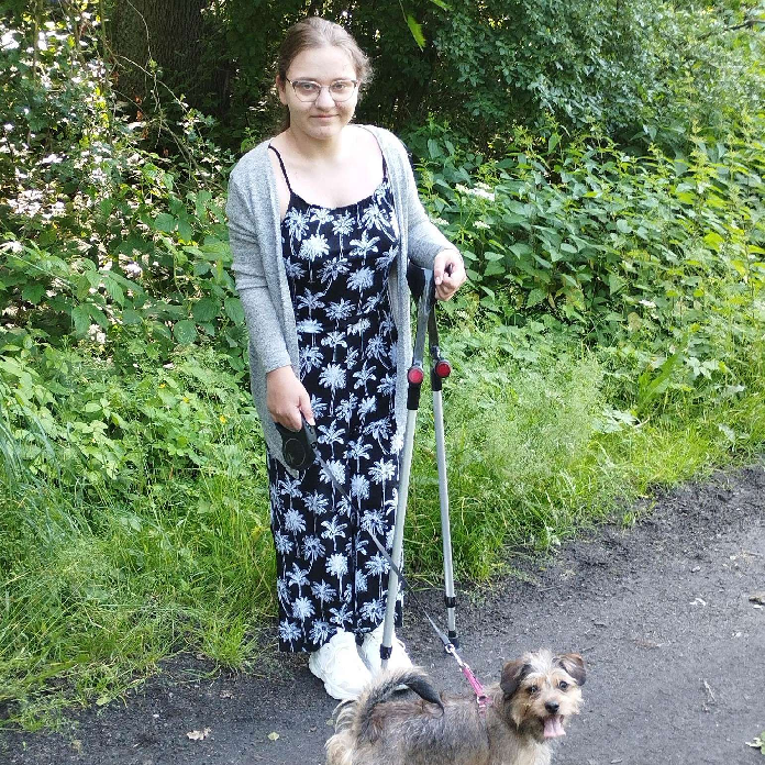 Nazywam się Karolina Dąbrowska. Mam 18 lat. Urodziłam się z wadą ze stopami końsko-szpotawymi.