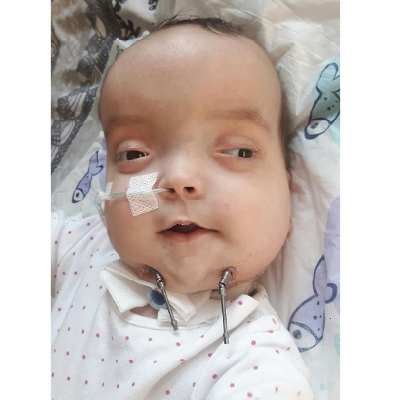 Karolinka urodziła się 3 kwietnia 2017r. z bardzo rzadkim zespołem wad genetycznych. Ma: zrośnięte szwy czaszkowe (kraniosynostoza), deformację twarzy, wodogłowie, bardzo obniżone napięcie mięśniowe, porażone podniebienie, przez co nie je sama i karmiona jest przez zgłębnik dożołądkowy.