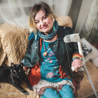 Cześć! Mam na imię Magda. Od 23 lat choruje na chorobę tkanki łącznej toczeń oraz zapalenie skórno-mięśniowe. Choroba mocno odbija się na mnie powodując u mnie silne rozrzedzenie tkanki kostnej (osteoporoza) w postaci licznych złamań kręgosłupa.