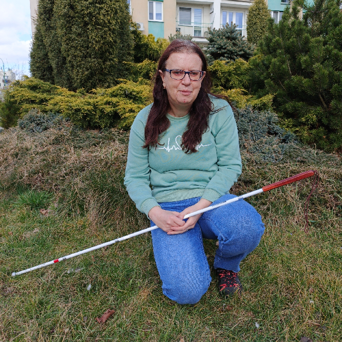 Mam na imię Magdalena. Od urodzenia jestem osobą bardzo słabowidzącą, widzę zaledwie pare procent. Poruszam sie z białą laską, mam zwyrodnienie siatkówki, astygmatyzm, Chorobę Stargardta i jaskrę.