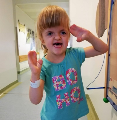 Maja urodziła się w 2016 r. w Elblągu z rzadką chorobą genetyczną – Zespołem Aperta. Kości czaszki i twarzy nie rosną prawidłowo, palce u dłoni i stóp są zrośnięte.