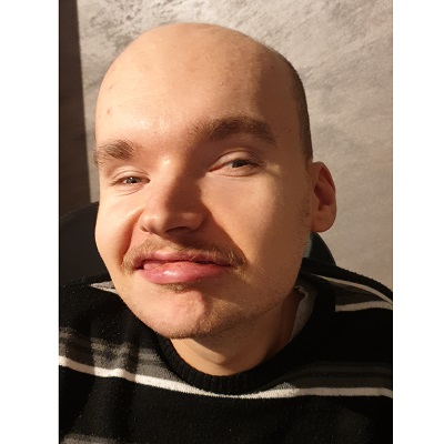 Witam. Mam na imię Marcin i od urodzenia jestem osobą niepełnosprawną - stwierdzono u mnie wadę rozwojową ośrodkowego układu nerwowego. Wiąże się to z tym, że jestem osobą niewidomą z upośledzeniem umysłowo - ruchowym, a co za tym idzie leżącą i niesamodzielną.