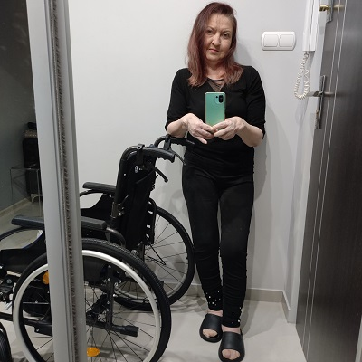 Przez wiele lat, choroba ta doprowadziła u mnie do całkowitego wyniszczenia stawów. Przeszłam operację stawu skokowego (ARTRODEZA), w wyniku której oraz wielu innych czynników, poruszam się na wózku, czekając na kolejne operacje tj. endoproteza stawu biodrowego, endoproteza kolana oraz endoprotezy nadgarstków obu rąk. Na co dzień największym problemem są schody (mieszkam na II piętrze) i od czasu operacji nie wychodzę z domu, a każde wyjście do lekarza, to nie lada wyzwanie, to tak jakby wspinaczka na „MOUNT EVEREST"