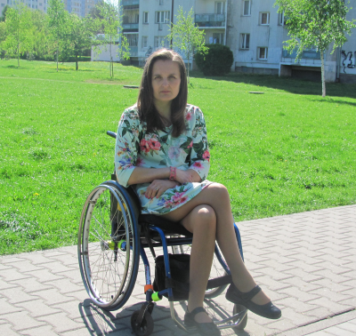 Mam na imię Marta. W 1996 r. uległam wypadkowi komunikacyjnemu jako pasażer. Mam uszkodzony kręgosłup szyjny i poruszam się na wózku inwalidzkim.