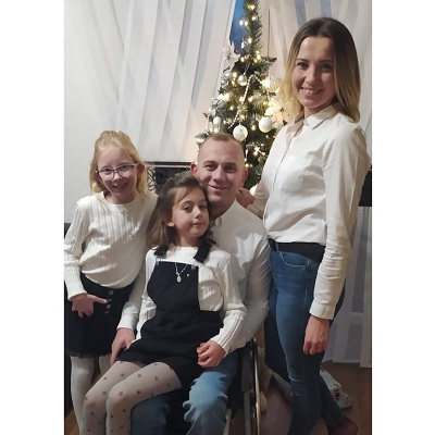 Ta sytuacja nie przeszkadza mi być osobą aktywną, staram się żyć tak jak zdrowi ludzie. Pracuję, mam kochaną żonę i dwie wspaniałe córki. Moje leczenie wymaga intensywnej i długotrwałej rehabilitacji, ale z całych sił walczę o powrót do sprawności.