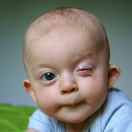 Mama z tatą bardzo płakali. Kiedy miałem kilka dni trafiłem znowu do szpitala, bo nie mogłem oddychać. Leżałem kilka tygodni z wielką rurą w gardle, zrobili mi więcej badań i okazało się, że mam zrośnięte żebra i półkrąg w kręgosłupie. Lekarze powiedzieli, że to zespół Goldenhara. Co 2 miesiące jeżdżę z rodzicami na operacje oczka, wszczepiają mi tzw. ekspandery, które dopóki tak szybko rosnę trzeba bardzo często wymieniać. Rodzice bardzo się martwią, bo leczenie jest drogie. Kiedyś będę miał implant, a wszystko będzie schowane pod protezą oka. Jeśli chcesz pomóc w moim leczeniu, będę bardzo wdzięczny.