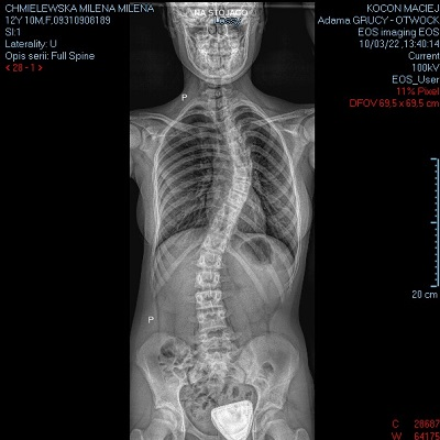 i obecnie skrzywienie się pogłębiło. Jest to skrzywienie kręgosłupa, które nie tylko powoduje defekt estetyczny, ale może przyczyniać się do przemieszczenia narządów wewnętrznych oraz silnych bólów. Leczenie możliwe wyłącznie operacyjnie. Operację mam zaplanowaną we Wrocławiu na 16 grudnia br.