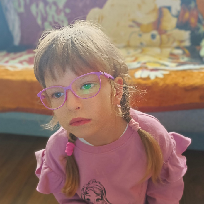 Cześć, mam na imię Nadia. W grudniu będę mieć 7 lat. Od urodzenia zmagam się z wieloma chorobami. Mam torbielowatość nerek, stwardnienie guzowate i epilepsję. Mam też wadę wzroku – astygmatyzm, dlatego muszę nosić okulary.