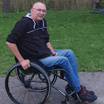 Witam, mam na imię Piotrek. W wieku 24 lat, w wyniku nieszczęśliwego zdarzenia doznałem złamania kręgosłupa na odcinku szyjnym. Spowodował on u mnie dysfunkcję kończyn górnych i dolnych oraz konieczność poruszania się na wózku inwalidzkim.