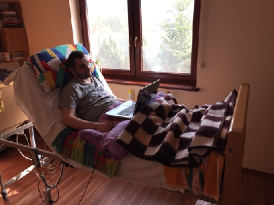 Z aktywnej osoby stałem się osobą niepełnosprawną, całkowicie zależną od pomocy innych. Poprzez ciężką pracę z fizjoterapeutami odzyskałem część sprawności górnych kończyn i nauczyłem się na nowo korzystać z telefonu oraz komputera. Obecnie pracuje w firmie transportowej jako spedytor międzynarodowy, a powierzoną mi pracę wykonuję w domu. Systematyczna rehabilitacja wiąże się z dużymi kosztami, których w całości nie pokryje domowy budżet. Dlatego proszę o pomoc.