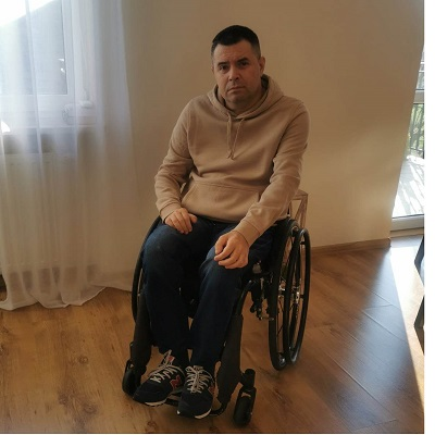 w wyniku wypadku złamałem kręgosłup i uszkodziłem rdzeń kręgowy, konsekwencją czego jest paraliż czterokończynowy. Poruszam się na wózku inwalidzkim. Potrzebuję całodobowej opieki. Codziennie biorę leki gdyż zmagam się z silną spastyką.