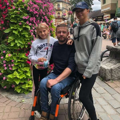 Nazywam się Rafał Mura, mam 39 lat. W czerwcu 2015 roku doznałem urazu kręgosłupa z dużym uszkodzeniem rdzenia kręgowego. Obecnie poruszam się na wózku.