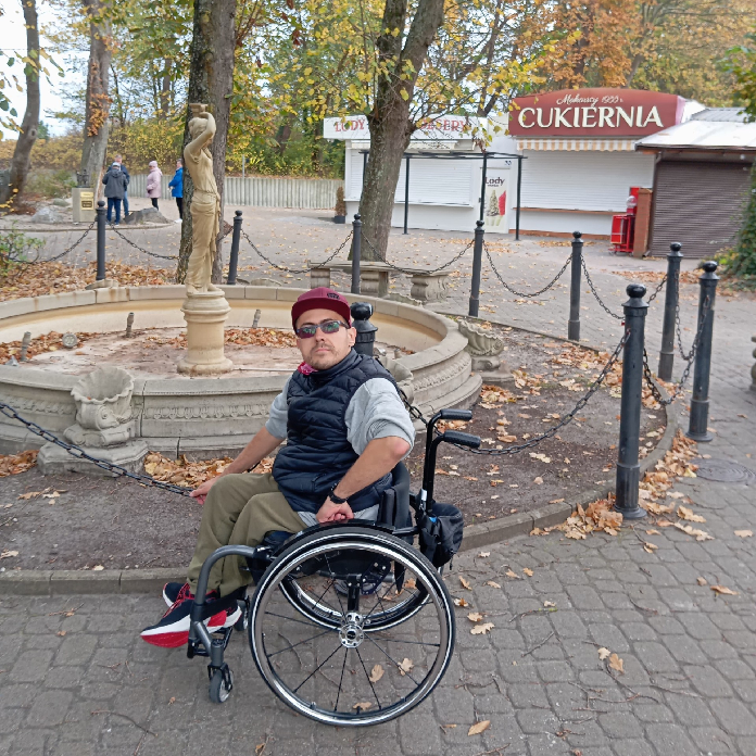 Poruszam się na wózku inwalidzkim. Urodziłem się z przepukliną oponowo-rdzeniową, wodogłowiem, padaczką oraz wadą wzroku. Mam niedowład kończyn dolnych i skoliozę kręgosłupa, stopy końsko-szpotawe z przykurczem w prawym kolanie i niedorozwojem lewego biodra. Jestem obecnie po wielu operacjach, cały czas borykam się z odleżyną, gdyż cały czas siedzę na wózku. Ostatnio zmagam się z problemami finansowymi na różnego rodzaju sprzęty ortopedyczne czy rehabilitacje.