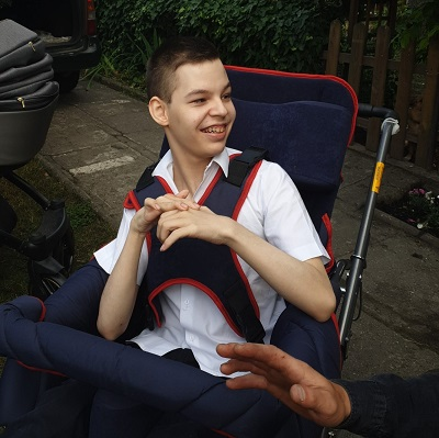 Dzień dobry. Mam na imię Seweryn i mam 18 lat. Od urodzenia choruję na Dziecięce Porażenie Mózgowe, dysplazję oskrzelowo – płucną, epilepsję. Mam wszczepioną zastawkę Pudenza. Jestem osobą, która ma zdiagnozowaną niepełnosprawność intelektualną w stopniu głębokim.