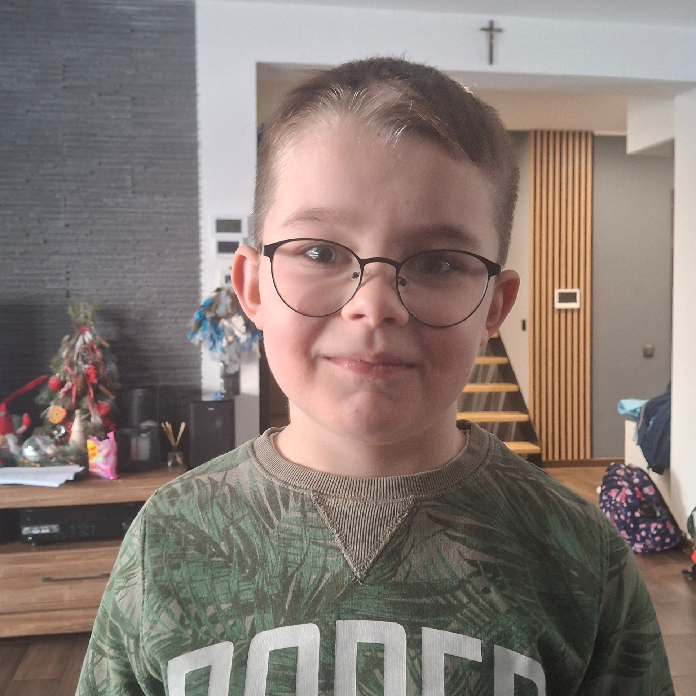 Szymon ma 8 lat i od urodzenia zmaga się z wieloma wyzwaniami zdrowotnymi. Urodził się ze stopą końsko-szpotawą, co już od pierwszych miesięcy życia wymagało intensywnego leczenia za granicą. Najpierw nosił szynę Mitchella, a następnie but ADM, aby mógł prawidłowo stawiać pierwsze kroki.