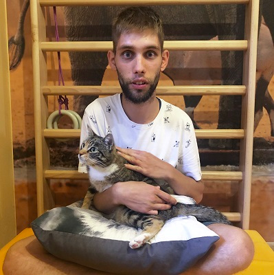 Tego, co przychodzi dzieciom samoistnie, syn był uczony kolejno w trudzie codziennych ćwiczeń i systematycznej rehabilitacji. Mimo, że Szymon ma obecnie 31 lat, z powodu niedojrzałości intelektualnej ma zachowania kilkuletniego dziecka i wymaga stałej opieki oraz rehabilitacji wspomagającej jego funkcjonowanie w społeczeństwie. Szymon wymaga też diety i odpowiedniego leczenia. Szymon lubi przebywać wśród ludzi i kocha zwierzęta. Jest nastawiony ufnie do otoczenia, nawiązuje przyjazną komunikację z ludźmi. Nadal systematycznie korzysta z rehabilitacji z NFZ oraz prywatnie. Wszystkim, którzy angażowali się lub chcą angażować się we wspieranie Szymona bardzo dziękujemy! Szymon ze swoją mamą.