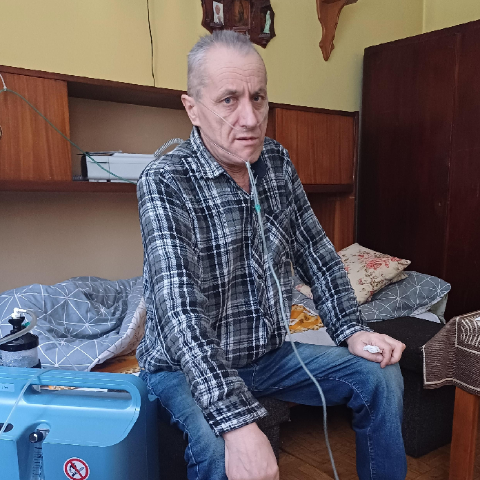 Nazywam się Tadeusz Zowczak. Mam 62 lata i choruję na przewlekłą obturacyjną chorobę płuc, charakteryzującą się postępującym i niecałkowicie odwracalnym ograniczeniem przepływu powietrza przez drogi oddechowe. Dodatkowo cierpię na ostrą niewydolność oddechowa, mam także rozstrzenie oskrzeli. W związku z tym wymagam ciągłej tlenoterapii biernej.