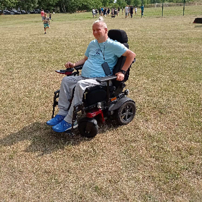 Mam na imię Tomek. Mam 42 lata. W 1997 roku spędzałem swoje pierwsze wakacje na Mazurach. Na skutek nieszczęśliwego wypadku doznałem złamania kręgosłupa. Jego następstwem jest porażenie czterokończynowe.