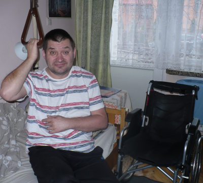 Kilka miesięcy pozostawałem w głębokiej śpiączce z powodu ciężkiego urazu głowy i twarzy. W wyniku zdarzenia doznałem porażenia czterech kończyn, coraz bardziej postępują skostnienia okołostawowe. Jestem niezdolny do samodzielnej egzystencji. Mam orzeczony I stopień niepełnosprawności, obecnie poruszam się za pomocą wózka inwalidzkiego przy pomocy rodziny. Moja rodzina wykorzystała już wszelkie dostępne możliwości leczenia, ale zaczyna brakować nam środków.