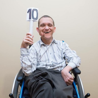 Tomasz ma 42 lata i spory bagaż bolesnych doświadczeń. Cierpi na dziecięce porażenie mózgowe, w wyniku którego porusza się na wózku inwalidzkim.