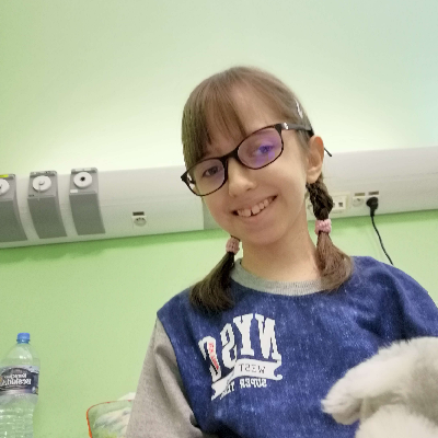 Mam na imię Wiktoria mam 10 lat walczę z chorobą Recklinghausena, glejak nerwu wzrokowego i wodogłowie, przez glejaka nerwu wzrokowego tracę wzrok, niestety na prawe oczko już nie widzi, a na lewe oczko mam tylko 10 procent widzenia.