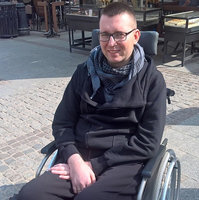 Witajcie! Nazywam się Wojtek Jaroszewicz. Od 2008 r. walczę z chorobą, która powoli odebrała mi właściwie wszystko: całą sprawność, samodzielność, poczucie wartości i bycia potrzebnym. Od 2012 roku poruszam się na wózku, co było dla mnie małą tragedią. Życie jednak pokazało mi, że może być gorzej i od 2017 r. mam pełny niedowład czterokończynowy plus inne dolegliwości typu spastyka, nerwica lękowa, depresja, które już wcześniej dawały o sobie znać.