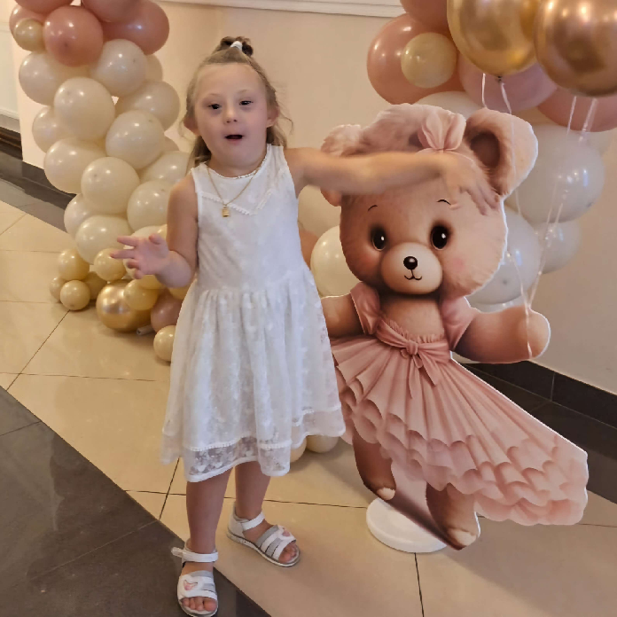Cześć! Jestem Zosia, urodziłam się 24 lutego 2019r. i mam Zespół Downa (Trisomia Prosta Chromosomu 21). To nie jest choroba, ale wada genetyczna, która opóźnia mój rozwój ruchowy i intelektualny.