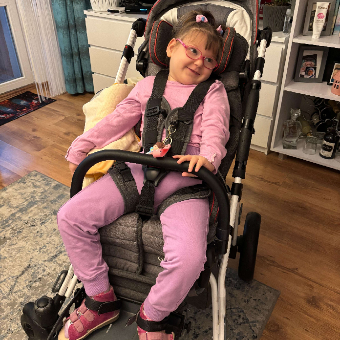 Nie jem buźką ani nie piję, wszystko dostaję od razu do brzuszka. Sama nie trzymam główki ani nie siedzę. Mimo skończonych 5 lat jestem na poziomie 3 miesiąca życia. Potrzebuję dużo różnych zabiegów, terapii, rehabilitacji oraz specjalistycznych sprzętów, abym mogła czuć się lepiej i moje choroby drastycznie się nie pogłębiały.