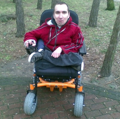 Witam, nazywam się Łukasz Rębelski. Od urodzenia choruję zanik mięśni (dystrofia mięśniowa).